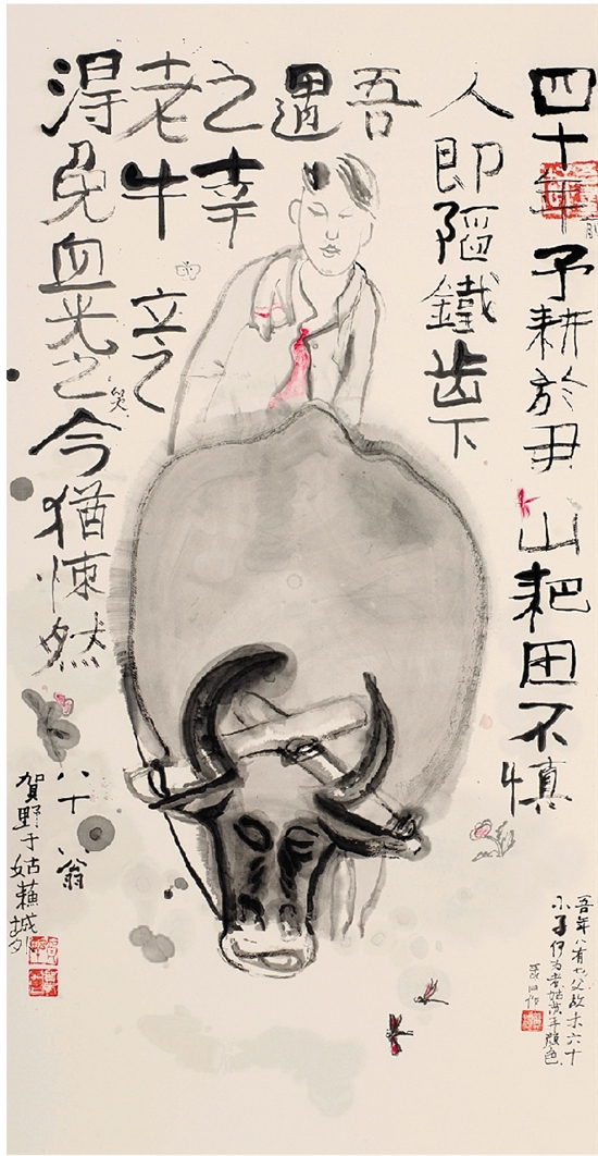 贺野 尹山牛耕图