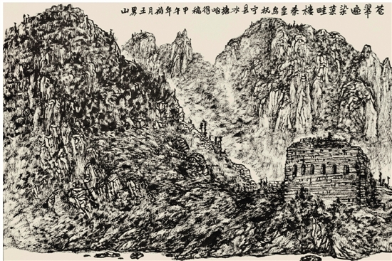 王界山 苍翠遍染菜畦楼 37.5×25cm