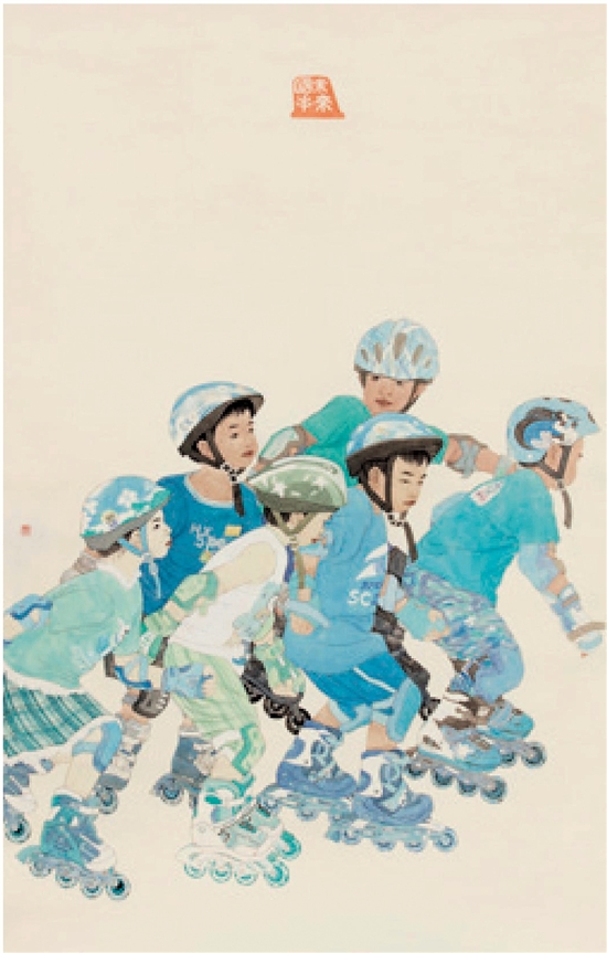 锻炼 未来国手 中国画 210×145cm