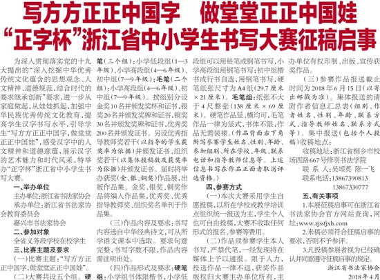 “正字杯”浙江省中小学生书写大赛征稿启事