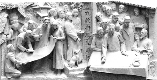 龙翔 钱云可 孟庆祝 漂泊殿堂 浮雕2.55×5m (选自“中国·美术·学院——中国美术学院九十周年纪念展”)