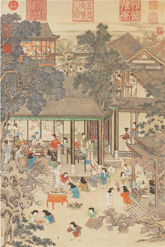 清 姚文瀚 岁朝欢庆图 82.4×55cm 台北故宫博物院藏
