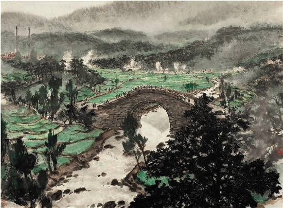 傅抱石 韶山关公桥 成交价:4772.5万元 华艺国际(广州)2021春季拍卖会拍品