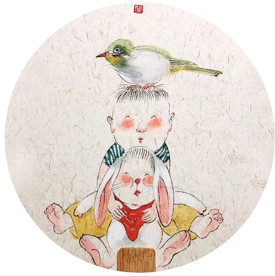 阿莲 我们三个排排坐 中国画