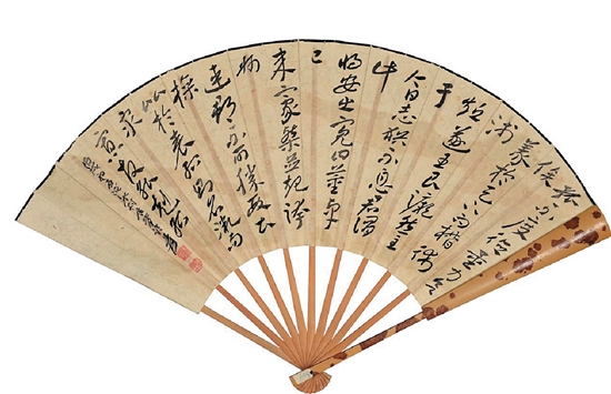 张大千 拟清湘老人笔意 57.5×20cm 成扇背面 1946年