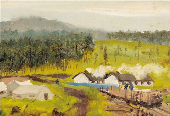 吴作人 云雨寒林(小兴安岭) 29×20cm 油画 1961年 吴作人艺术馆馆藏