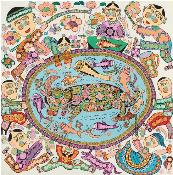 宋吉芬 水上乐园 75×75cm 平坡苗族绘画
