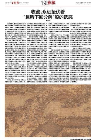 收藏,说到底是一件很有意义的活儿。我们不仅可以期待它们物质价值的保值增值,更时时处在急不可耐而“且听下回分解”般被诱惑的喜悦之中。只是,对每一个藏家来说,要收获满满的喜悦,你得加强学习,不断提升,力争做一个收藏的行家里手。有一句话说得好:“手中没有金刚钻,你就别揽瓷器活。”你不懂藏品,藏品也不会懂你,如此你就永远收获不到由“且听下回分解”般诱惑带来的乐趣和喜悦。