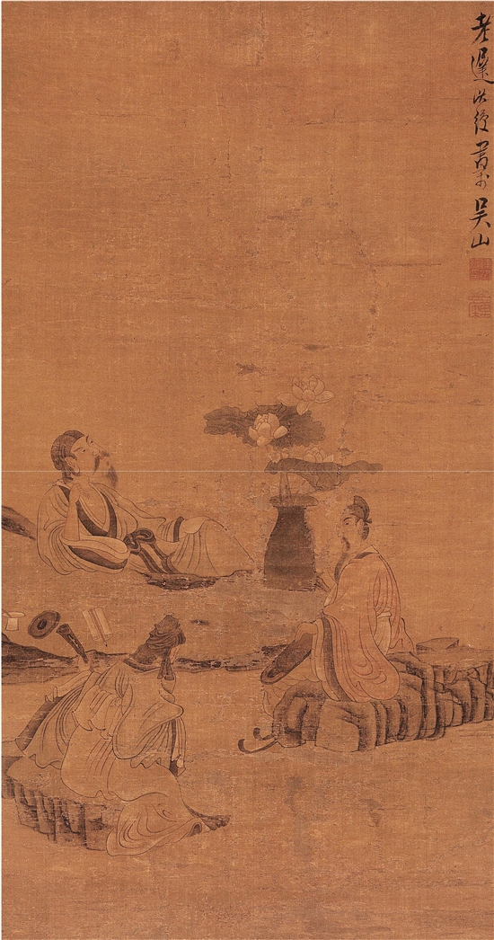 明 陈洪绶 听琴图 100.5×52.7cm 国画