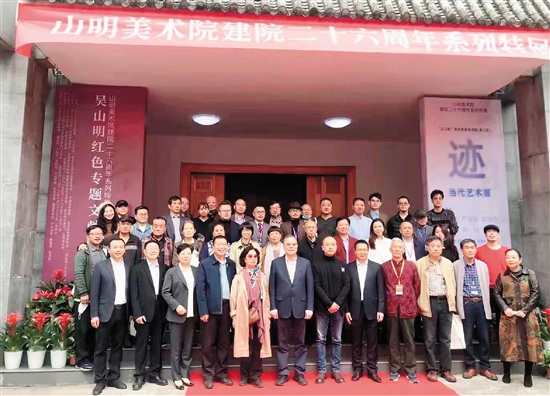 山明美术院建院二十六周年特展开幕现场领导嘉宾合影(浦江县融媒体中心供图)