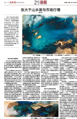 由于张大千的山水画面貌较多,有摹古山水、青绿山水、浅绛山水和泼墨泼彩山水四种风格,既有传统功力,又有创新意识,所以受到市场和藏家的追捧,在拍卖市场上屡创高价。特别是他晚年创作的泼墨泼彩山水画,更是屡屡创出亿元的天价。