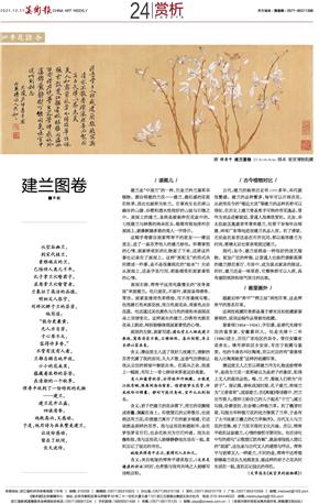 澹远堂主人之所以将建兰作为礼物送给恽寿平,是因为兰花一直都被认为是君子的象征,配得上文人的高洁品性。梅、兰、竹、菊被人们称为“四君子”。据记载,春秋战国时期,孔子爱兰,称颂兰为“王者香草”;屈原爱兰,在《离骚》等诗篇中,把兰比作贤人;楚怀王给自己的儿子起名“子兰”;越王勾践,卧薪尝胆,在会稽山种植兰草。到了魏晋时期,勾践当年种植兰花的地方修筑了兰亭,于是有了大书法家王羲之的《兰亭集序》。历代文人与兰花的交集,给了兰花丰厚的文化内涵。所以,恽寿平收到这盆建兰,心情的愉悦可想而知。他在诗句中写的那句“云散楚江犹有畹”,就是暗指投入楚江的“屈原”,这也是与古代文人的遥想与呼应。恽寿平与前辈文人一样爱兰,不同的是,恽寿平还希望能够跟兰花长久地做朋友,跟这样的君子之花共同生活在一起,直到忘记彼此的存在。