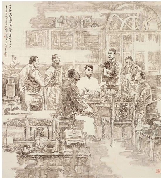 谭崇正 中共武汉早期组织诞生 200×200cm