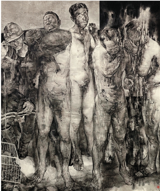 黄骏 沐浴 水墨宣纸 240×220cm 2014年(十二届全国美展“创作提名奖”)