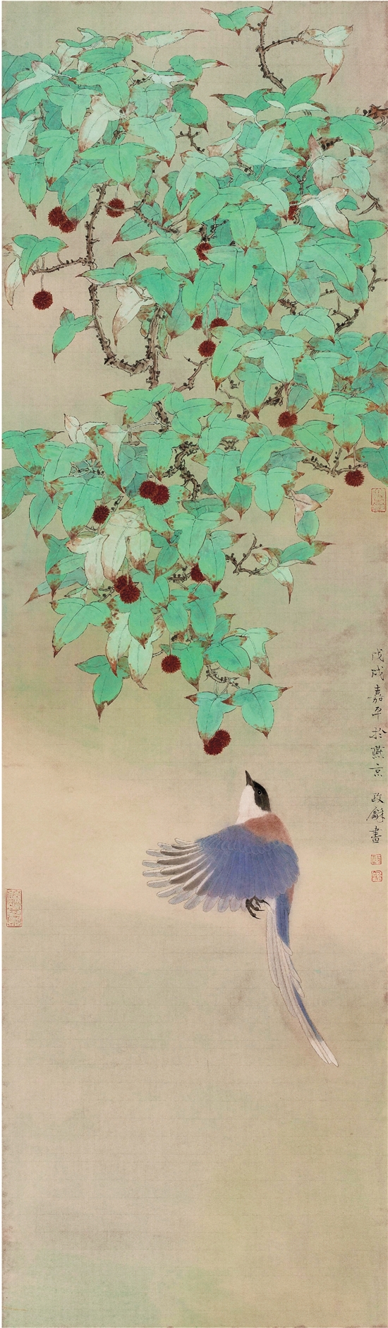喜鹊枫香图 纸本设色