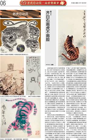 齐白石还有一幅《虎》,与这幅有异曲同工之妙。一只老虎横卧画中,头转向里面,只呈现一个背影,虎尾卷曲扬起,显示出刚劲有力的雄魄虎威。整个画面给人一种万籁俱寂的感觉,独显老虎不怒自威的霸气。构图匠心独运,构思巧妙。上书“啸天将军仁弟正,庚寅十一月小兄璜九十”。据该画持有者、著名收藏家张宗宪介绍:1950年,年届九十的齐白石为祝贺老友杨虎将军生日,特地赶到上海,住在杨家寓所画了这幅作品相赠。此画在2010年4月香港苏富比春季中国书画拍卖会上,以3202万元售出,可见其艺术价值之高。 (作者为文史学者)