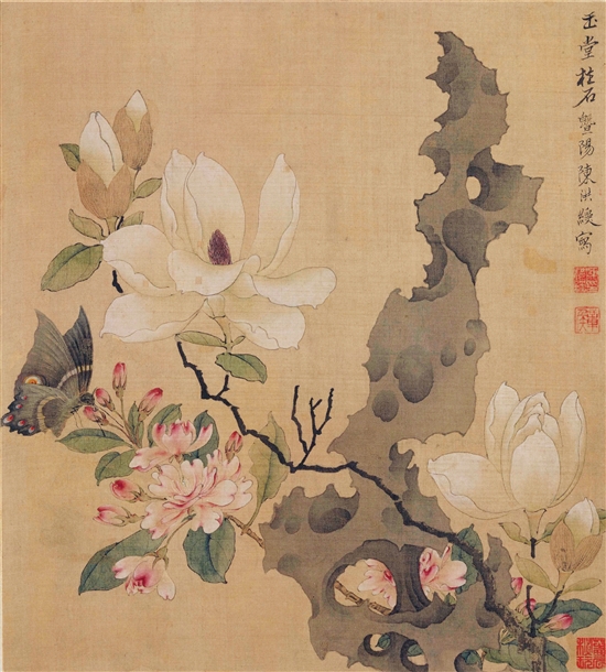 明代 陈洪绶 玉堂柱石图册 30.2×25.1cm 绢本 设色 故宫博物院藏