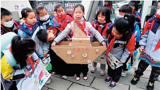 杭州市未来科技城海创小学学生用废旧材料做的“海创二号”船