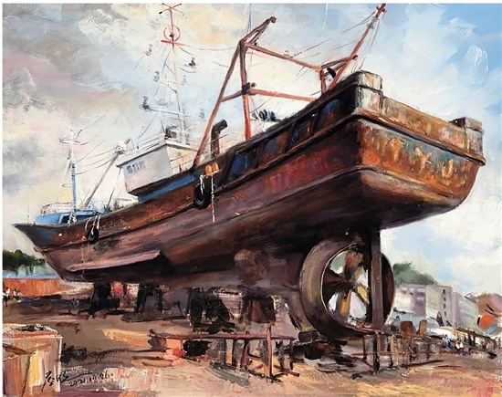 暴发明 午后的船坞 油画