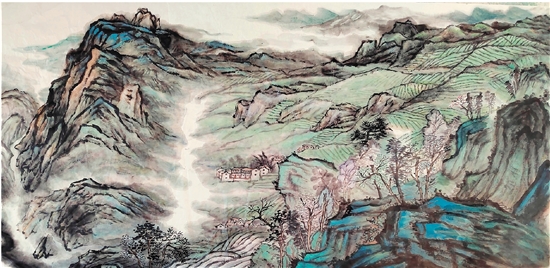 罗朝建 茶乡新绿 国画