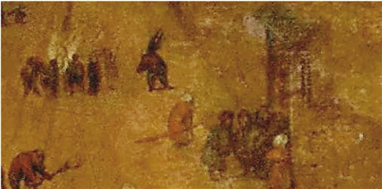 画面右侧的远处,一群孩子在围着火堆搞篝火晚会,这是在玩圣约翰节庆典。