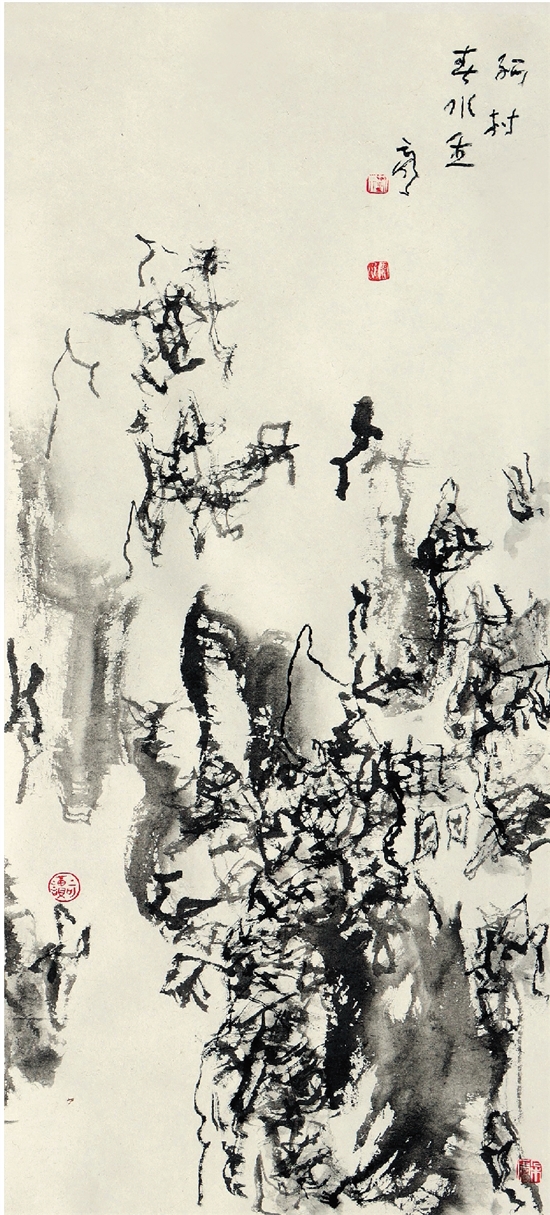 刘云泉 孤村春水生 81.5×34cm 纸本水墨 2022年