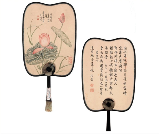 清 乾隆 荷花图木柄团扇 故宫博物院藏