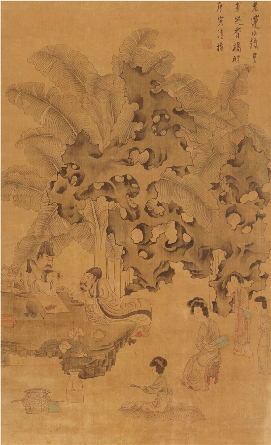陈洪绶 蕉荫丝竹图 轴 绢本