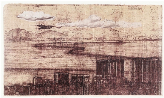 石刚 天下飞梁——港珠澳大桥 版画 57×100cm