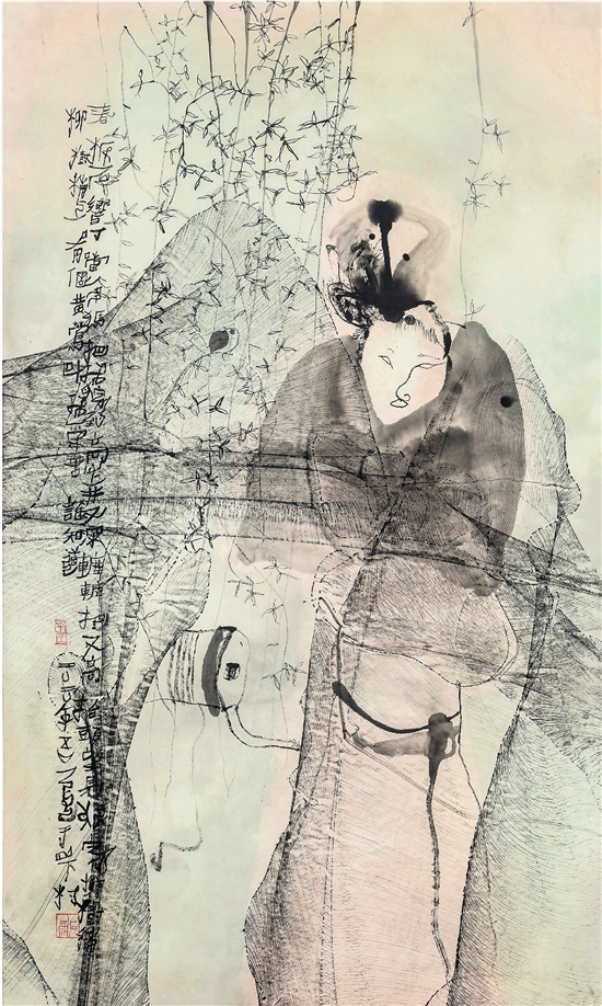 石虎 黄莺 146×88cm 2020年 纸本彩墨