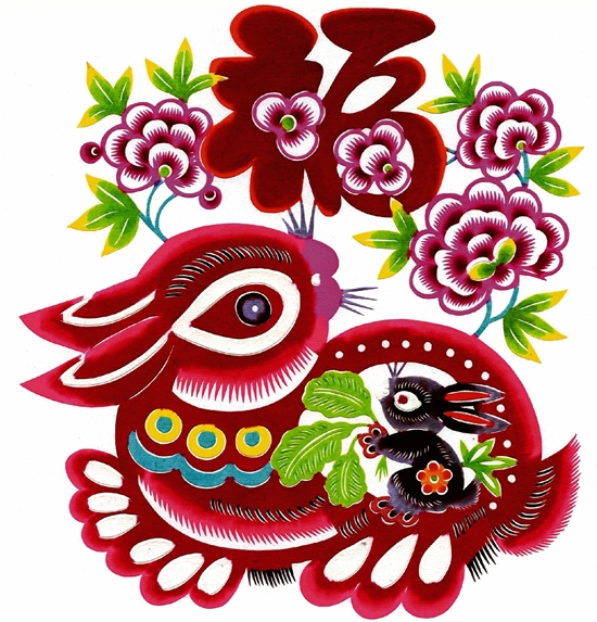 申沛农 福到兔年 染色刻纸 7.4×7cm 1998年
