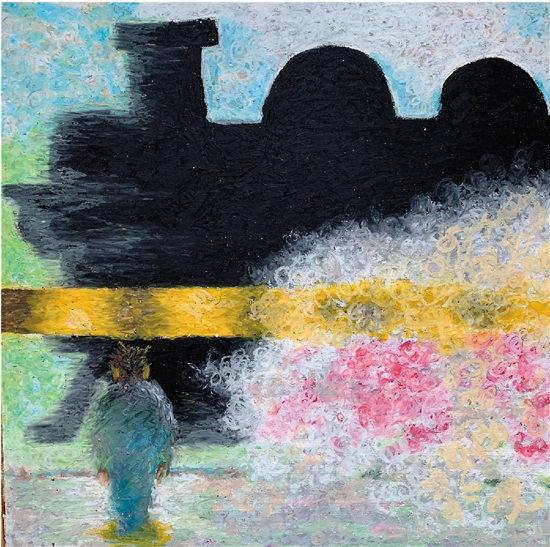 龙念南 薏童年系列之看火车 50×50cm 油画棒 2019年