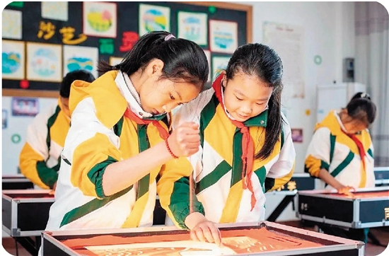 江苏省海安市南莫镇中心小学常态化开设校内沙画实践课堂 (翟慧勇/摄)
