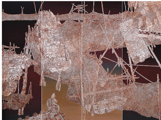 栾剑 洪泽湖边运河情 180×240cm 中国画