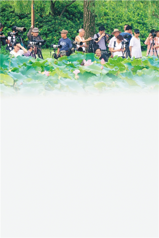 本版图片:高温酷暑,热闹的荷塘边的摄影发烧友 徐瑞康/摄