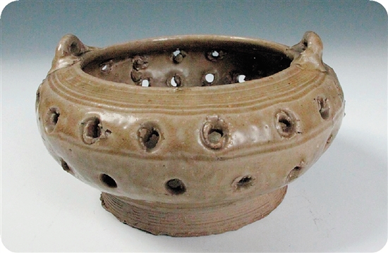 东晋越窑青瓷二钮多孔瓷炉