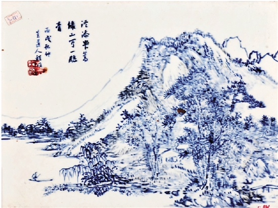 清光绪 程门(1833-1908) 青花山水瓷板画 景德镇中国陶瓷博物馆收藏