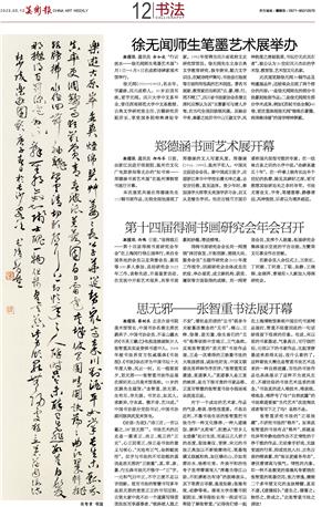 本报讯 蔡树农 北京介居书院美术馆馆长,中国书协名誉主席沈鹏弟子、中国书协会员、不显山露水的《书圣王羲之》电视连续剧制片人张智重其实是资深书道中人。2008年被书法界官方权威媒体《书法报》、《书法》杂志评为中国书坛十大年度人物,风云一时。五一假期前夕,思无邪——张智重书法作品展在深圳关山月美术馆亮相。93岁的沈鹏先生题贺:“念智重,思无邪。生有尽,学无涯。书言志,如其人。求新异,守本真。锲不舍,艺曰成。”中国书协原分党组书记、中国书协顾问陈洪武发来贺电。