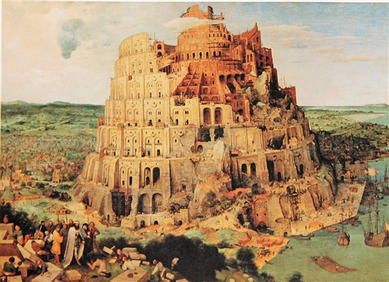 勃鲁盖尔的名作《通天塔》,是对巴比塔的想象。塔的一角坍塌了,前面尼布甲尼撒二世正站在塔前指挥修建。