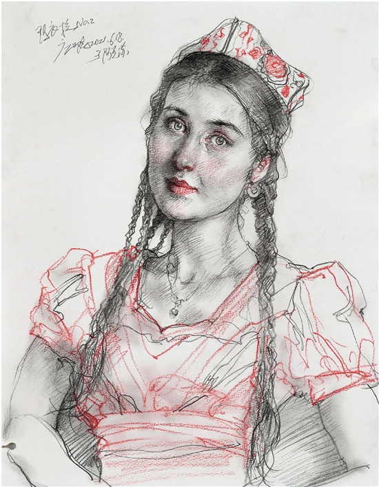 庞茂琨 玛依拉之二 35.5×26.5cm 纸本铅笔 色粉 2021年