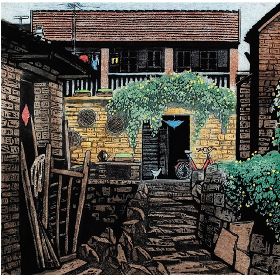 杜荣尧 山寨新居 57×56cm 版画 1992年
