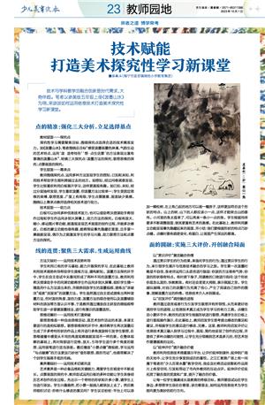 探究性学习需要聚焦目标,围绕探究点选择合适的技术精准发力。如《泼墨山水》,笔者围绕总目标“感受泼墨画墨色淋漓、气韵生动的艺术特点,运用‘泼-造奇特形’‘想-点生活景’的方法表现出富有意境的泼墨山水”,明确三大探究点:泼墨方法的探究;联想思维的探究;点景画面的探究。
