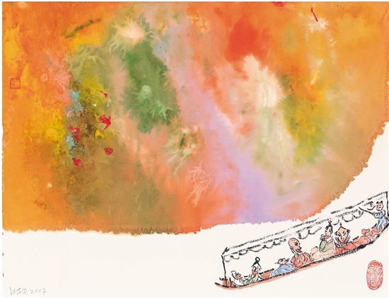 王少求 游西湖 中国画