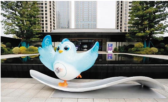 亚残运村居民服务中心门口的“飞飞” 江玥 摄