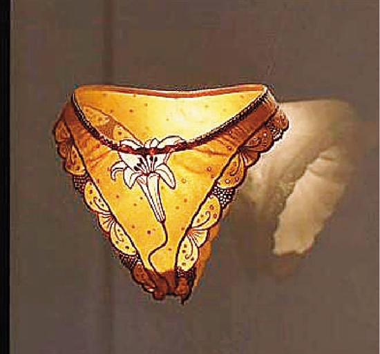 ◀中国台湾当代木雕艺术家吴卿镂刻的蕾丝内裤木雕,取名“行走的女人”,腰围24吋、臀围36吋的标准身材尺寸,以25公斤重的“黄杨木”镂刻成只有25克的薄如蝉翼、可透光的精致木雕。作者表示这件作品创作费时近1年,每天工作超过8小时,超写实雕塑手法,将女人形体化为无形。
