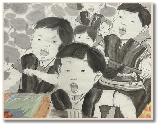 专家点评:一岁四时,四季变迁。廿四节气准确地反映了自然节律变化以及食育文化,在人们日常生活中发挥了极为重要的作用。学生将杭城节气的习俗与饮食习惯等浓缩在一个灵动的空间内。本作品为曲院风荷赛龙舟局部,与杭城的城市习俗特色有关,以此来呼吁大家传承传统文化。