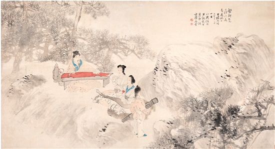 任伯年 东山丝竹图横幅 77.3×142cm 南通博物苑藏