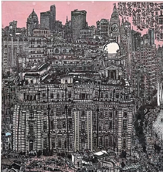 倪巍 海上一角——中山东一路外滩 200×200cm 纸本水墨 2023年