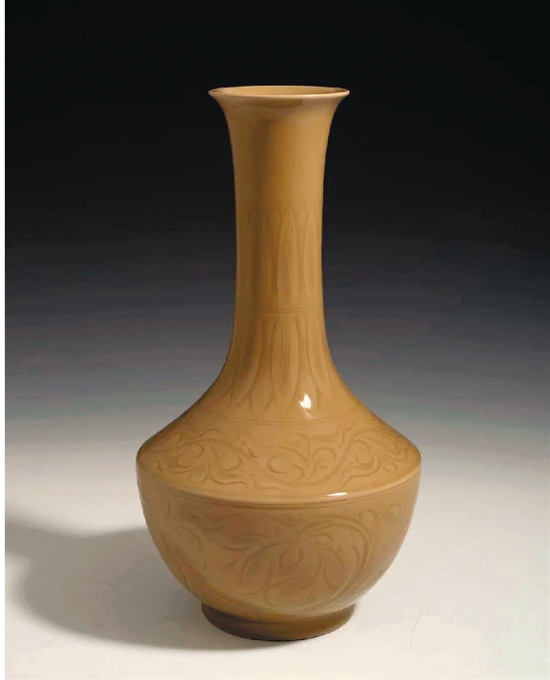 吴建春 龙泉青瓷 龙窑柴烧牡丹敞口瓶