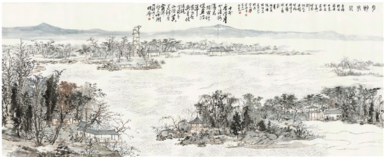 金鉴才 石君一 金心明 虞仲韦 月朗华川 144×365.6cm 中国画 2022年
